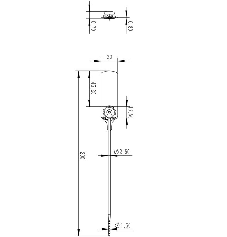 Overall-length: 200mm, 2.5mm diameter of the lock body